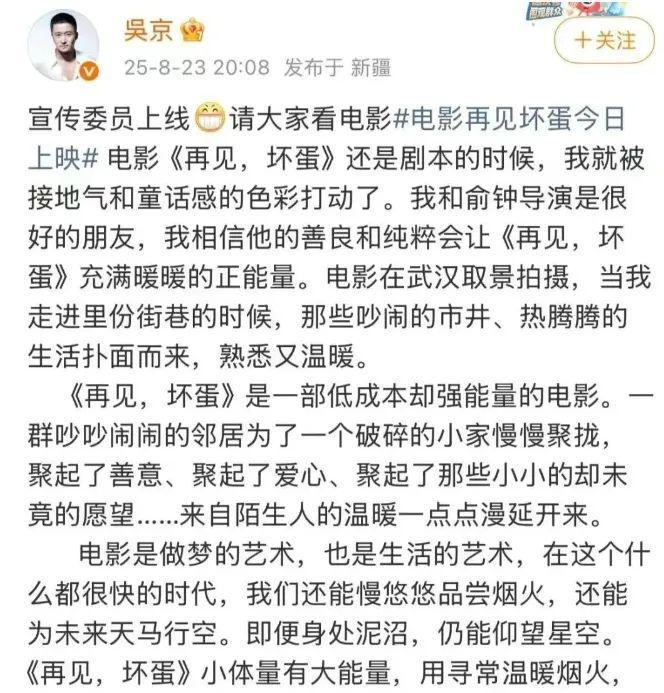虽然吴京亲自下场发文,洋洋洒洒写了一大段文字,甚至称自己为“宣传委员”,不遗余力地宣传这部戏,但似乎还是没人愿意买账。
