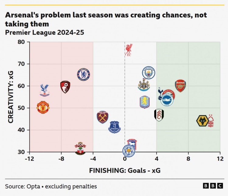 撇开点球,阿森纳进球少的主因更扎心了——他们创造的机会根本不够多!