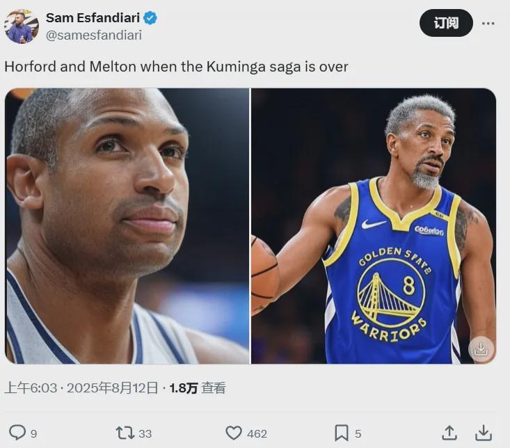 围绕库明加的交易谈判陷入僵局,导致霍福德和梅尔顿与勇士的签约事宜被迫搁置。
