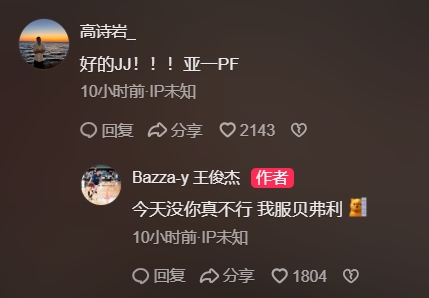 王俊杰随即回应道:"这场少了你真不行 贝弗利我服了"